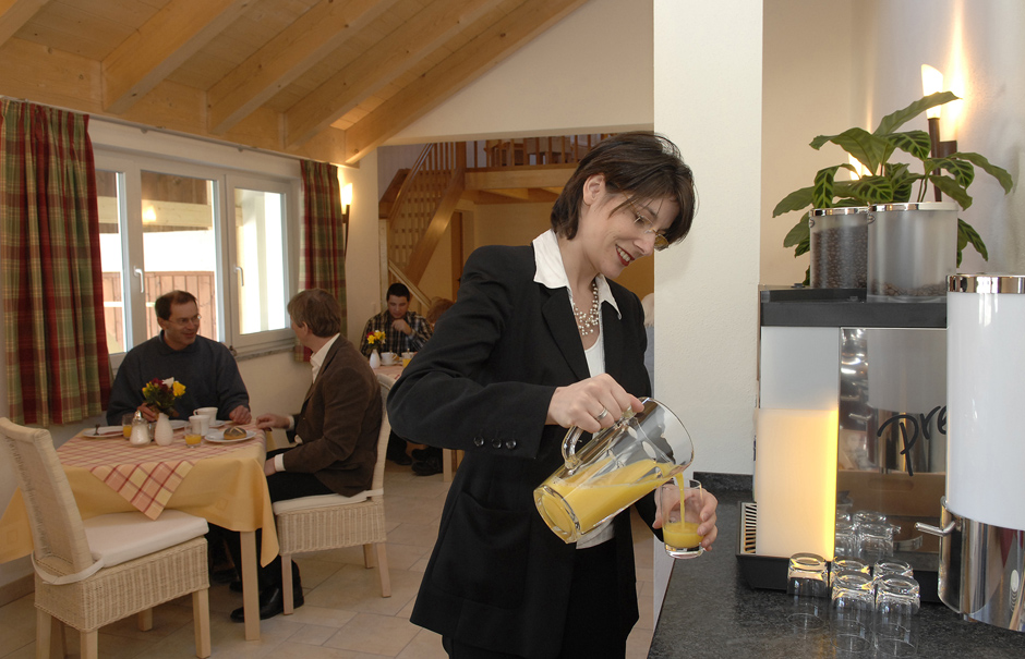 Herzstück des Hauses ist ein Licht durchfluteter Frühstücksraum mit Buffet, von dem aus die Landhaus-Gäste gestärkt in den Tag starten können.